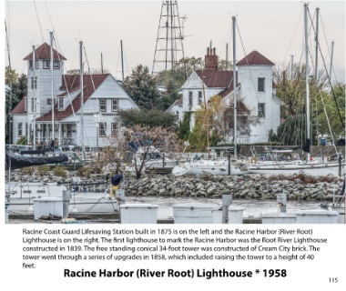Lighthouse is on the right. The irst lighthouse to mark the Racine Harbor was the Root River Lighthouse