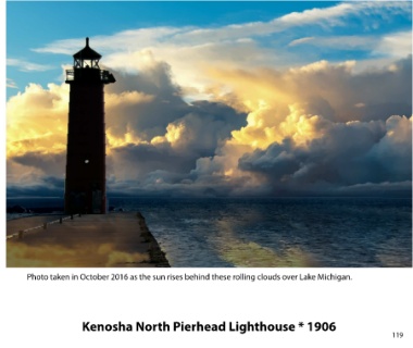 Photo taken in October 2016 as the sun rises behind these rolling clouds over Lake Michigan. Kenosha North Pierhead Lighthouse * 1906 119