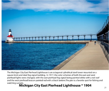 The Michigan City East Pierhead Lighthouse is an octagonal cylindrical steel tower mounted on a