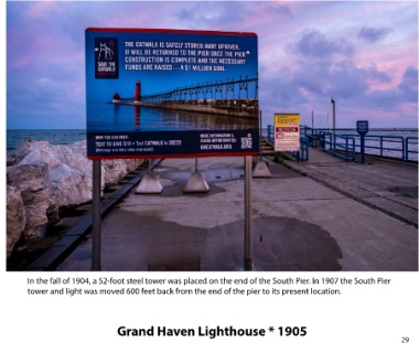In the fall of 1904, a 52-foot steel tower was placed on the end of the South Pier. In 1907 the South Pier tower and light was moved 600 feet back from the end of the pier to its present location. Grand Haven Lighthouse * 1905 29