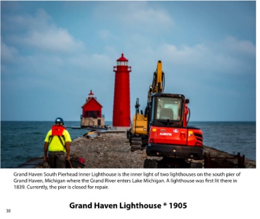 Grand Haven, Michigan where the Grand River enters Lake Michigan. A lighthouse was irst lit there in