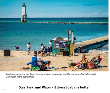 Beachgoers enjoying the day as the end of summer approaching. The Ludington North Pierhead Lighthouse in the background. Sun, Sand and Water - It doen’t get any better 44