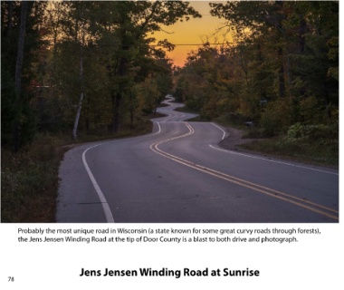 Probably the most unique road in Wisconsin (a state known for some great curvy roads through forests), the Jens Jensen Winding Road at the tip of Door County is a blast to both drive and photograph. Jens Jensen Winding Road at Sunrise 78